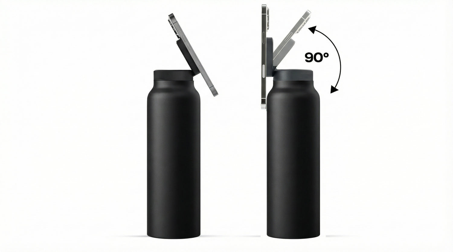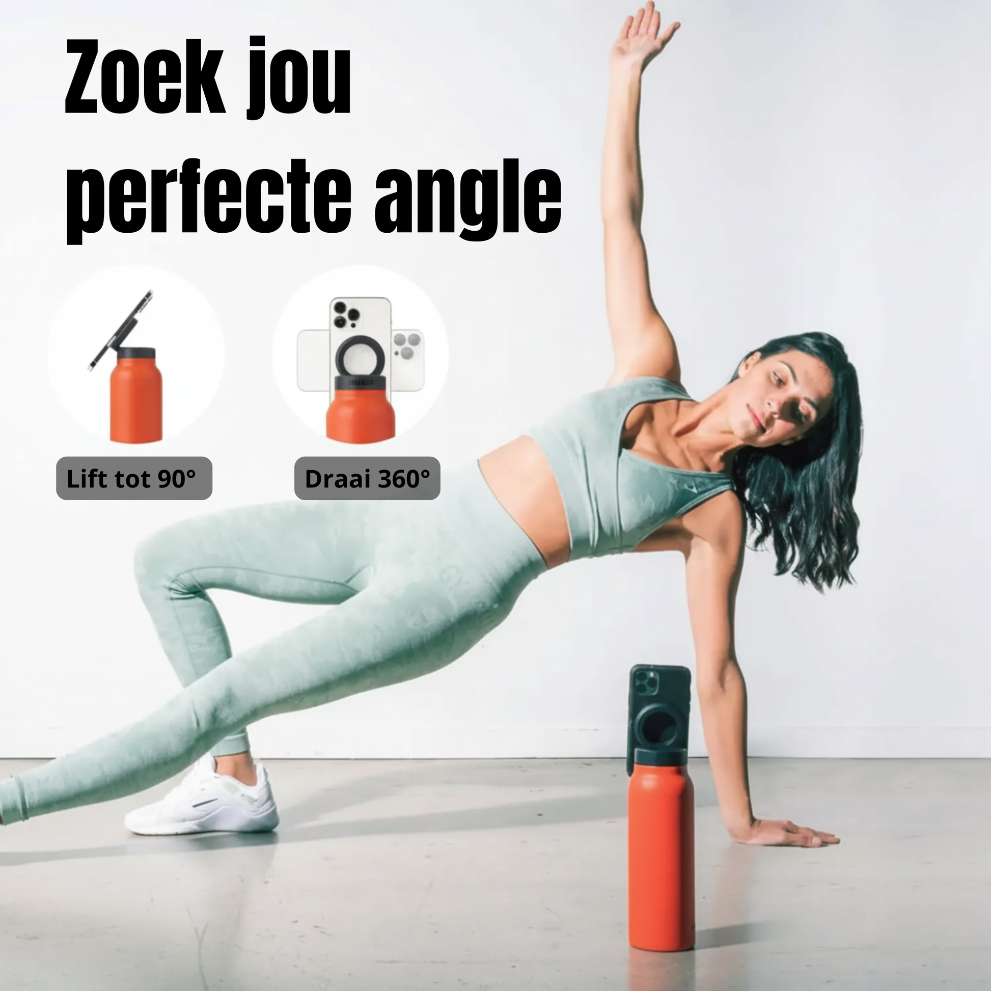Drinkfles en houder in één zodat jij overal hands-free je telefoon kunt gebruiken en niet meer met die losse tripod of andere houders hoeft rond te lopen.